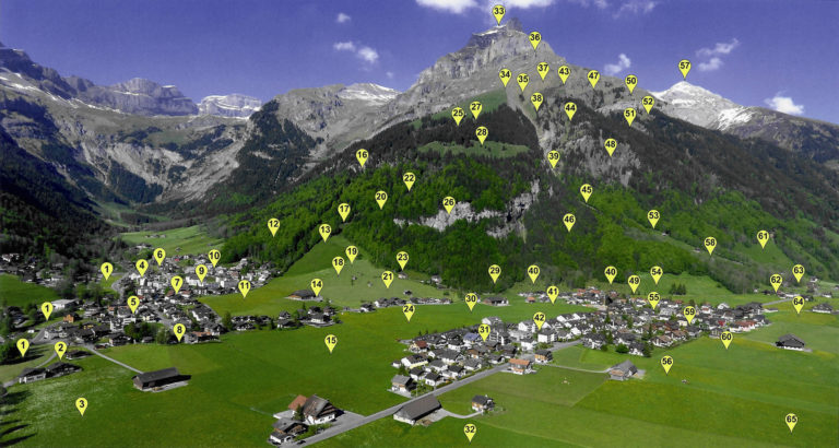 Heft Nr. 37 of the 2018 Engelberger Dokumente collection «Orts- und Flurnamen von Engelberg» contains 62 oblique photographs in which the names of places in Engelberg are represented as points and are not geolocated. Thanks to image2world and image georeferencing, 1,957 place names have been geolocated (commissioned by: Verein Kulturlandschaft Obwalden).